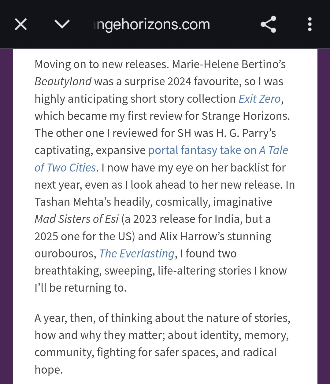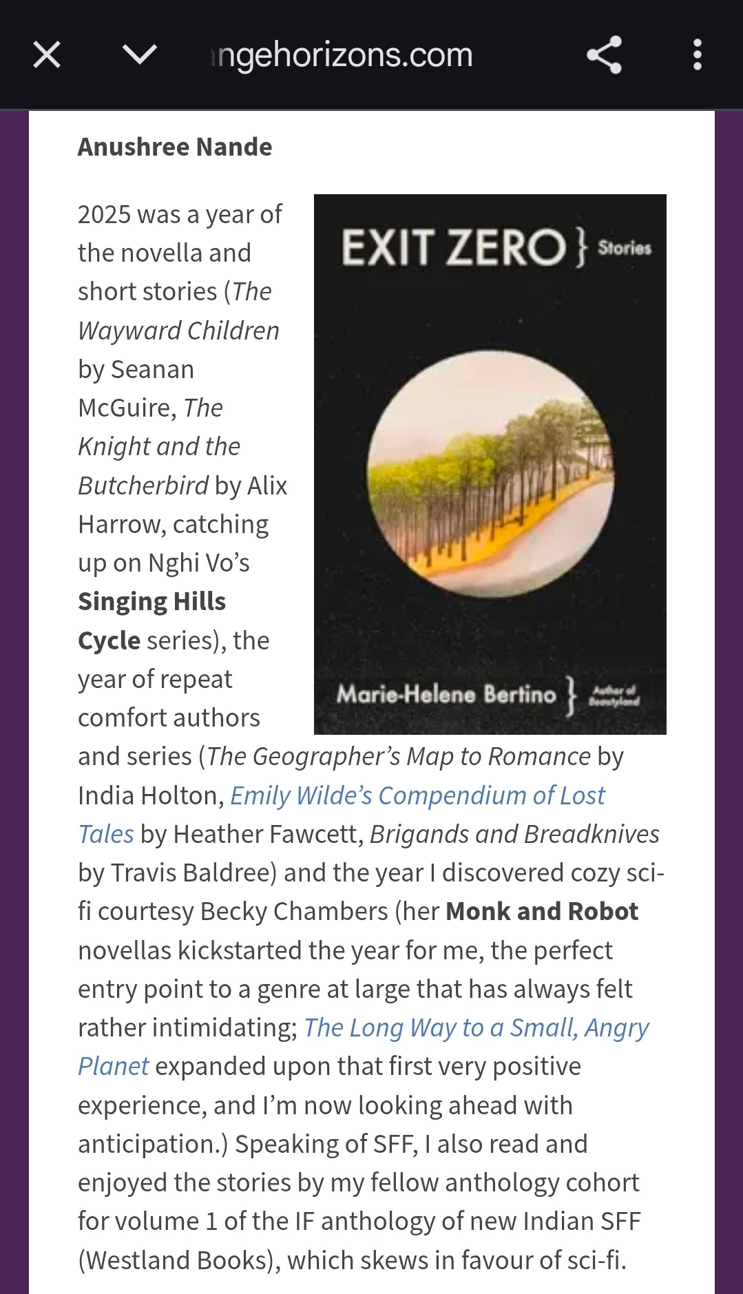 I also got to talk a bit about my reading year for Strange Horizons’ annual Year in Review.